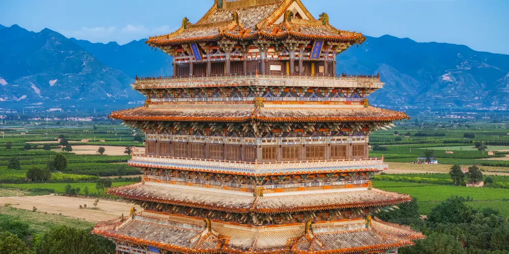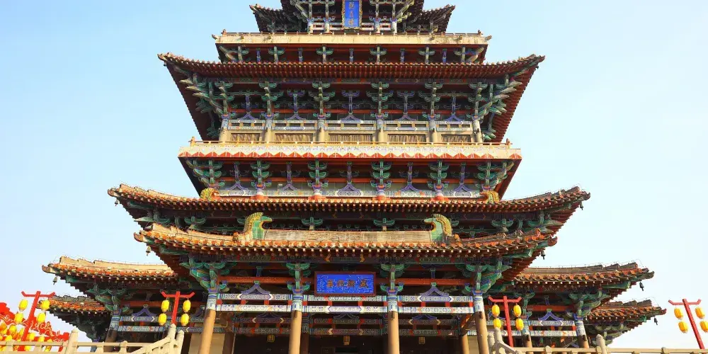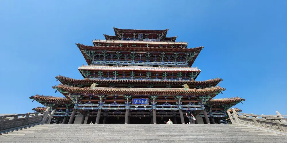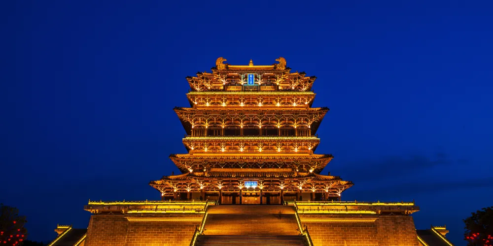 國家AAAA級旅遊景區、山西省十大景區之一、河東八景之一,位於山西省永濟市蒲州古城西的黃河東岸,與湖北武漢黃鶴樓、湖南岳陽岳陽樓、江西南昌滕王閣並稱為中國四大歷史文化名樓。鸛雀樓始建於北周(公元557-571年),是由北周大冢宰宇文護建造的一座軍事戍樓,因時有鸛雀棲息其上而得名。唐代詩人王之渙的《登鸛雀樓》「白日依山盡,黃河入海流。欲窮千里目,更上一層樓。」堪稱千古絕唱,流傳於海內外。該樓歷唐經宋存世700餘年,元初(公元1222年)毀於戰火。新建的鸛雀樓為仿唐形制,外觀四檐三層,內設六層,樓體總高73.9米,盡顯大唐風韻。登上鸛雀樓,不僅可以體會到登高望遠的境界,還可以感受到華夏五千年的燦爛文明。