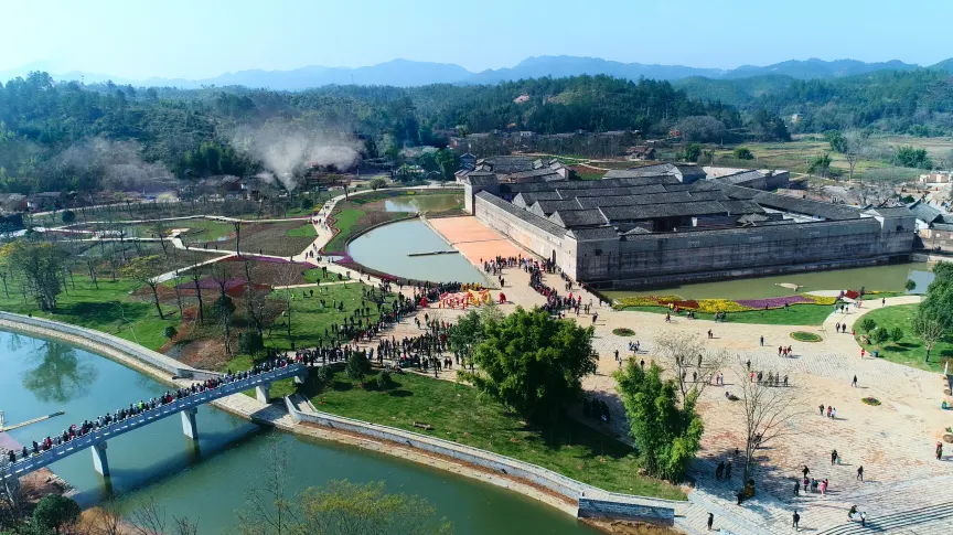 關西圍景區位於江西省龍南縣關西鎮境內,是贛南地區典型的客家民居,由關西新圍、西昌圍、田心圍、鵬皋圍等八座不同風格的客家圍屋構成。其中關西新圍是國家AAAA級旅遊景區,也是“全國重點文物保護單位“,迄今已有200多年的曆史。被譽為“東方的古羅馬城堡”、“散落在民間的故宮”,以保存完整、風格獨特、規模宏大、功能齊全而聞名於世,在中國傳統古民居建築中獨樹一幟。關西圍景區近溪而上,氣勢恢宏,錯落有致,與青山、綠水、亭閣、拱橋、果園組成一幅幅多姿多彩的絢美畫卷。