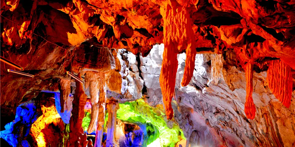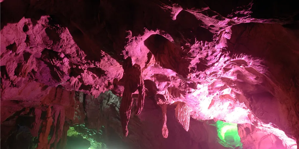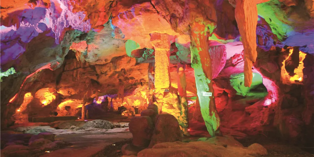 古風洞相傳內連九洞,現開發的一、二、三洞,約800米深。首洞長百餘米,寬20多米,高約10多米(高處過20米),夏日涼風習習,是個天然大劇場。仰看洞頂,上開天窗,可見洞外之天;俯看洞底,洞中花園花正開,洞中小河潺潺流。側看四周,洞中有洞,上下多洞重疊,左洞右洞,洞洞相連。進入二、三洞,眼前豁然開朗,舞廳、戲台、回廓相連,小橋、陰河、流水,清可照人,支洞橫生,一洞一景,如入迷宮。古風洞洞口有嘉慶四年(1799)所刊《仙人洞破暗記》青石碑,碑文由古風禪寺一高僧智燈主持所著。碑文曰“洞深數十里,景計三十有二,有前洞後洞、有正門側門、遊門、回門、有天成東床西閣,南廂北院,石磐鍾板,三樓五廟,雙闕四景、其中奇形異跡,不可勝記”。又有詩云:“小溪河畔眾芳妍,一洞幽莊古塞邊。豐羨仙家居閔苑,仿隨漁父入桃源。嚴寒未了春光早,酷暑全忘夏日炎。勝景天然觀不盡,細從碑誌讀遺篇。”洞口右側有智燈法師之墓。從洞外看,洞頂怪石林立,千姿百態。洞口為兩個穹形大口,汽車可開入洞中。唐朝僖宗光啟年間,洞口開始建寺,稱:“古風禪”。明朝嘉清辛酉年瀏陽縣誌記載:“洞口禪寺,三樓五廟,境頗幽闢,遙遠士大夫車馬穿至日落焉,閑知莫寂者絕少。”可見當時寺廟之興盛,遺憾的是由於戰亂等原因,三十年代寺廟逐漸遭損,到五十年代,寺廟已不復存在。