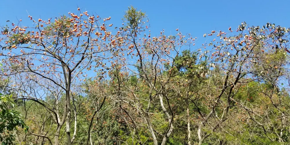 桂峯村位於丘陵地帶,山清水秀,生態環境良好,每到秋冬季節,漫山遍野長滿了火紅的柿子。