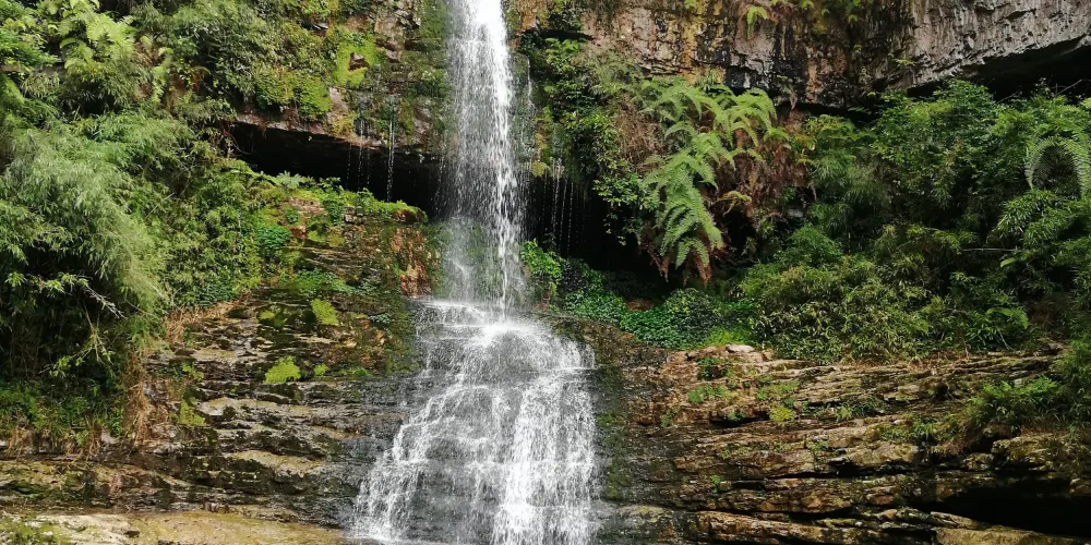 歸蘭山,位於都勻市陽和鄉嘎埽水族村寨,距離都勻市城區50公里。從嘎埽沿小路上山需一個半小時,路很陡很難走。是一處尚未開發之地,山勢雄偉,風光綺麗,峽谷深邃,谷底清流急湍,清澈見底,五彩山石在溪水的浸泡下色彩斑斕,峽谷跌宕,飛瀑流泉,是一處絕佳的徒步旅遊和露營的理想之地。