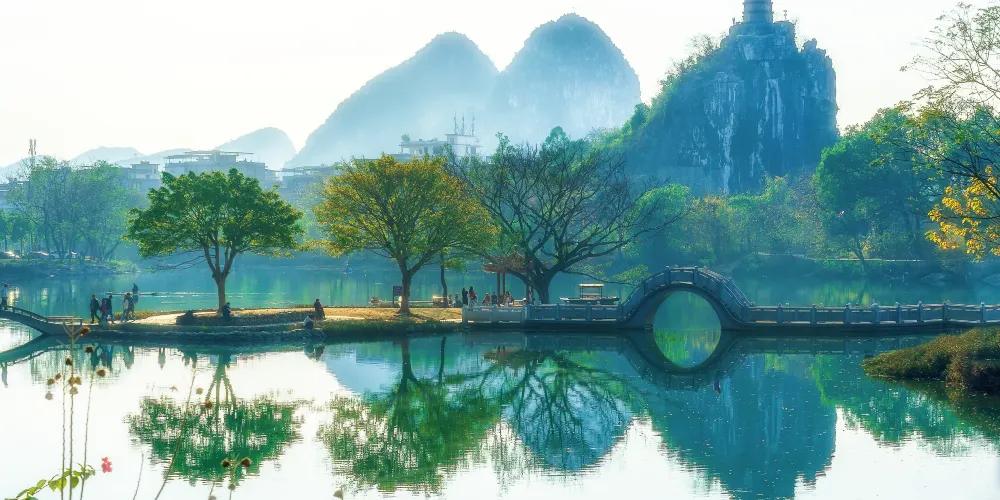 遊完溶洞,你可以走上湖心島觀景拍照。此外,景區內還有梁漱溟之墓、翰苑碑林、月岩等小景點可供探尋。