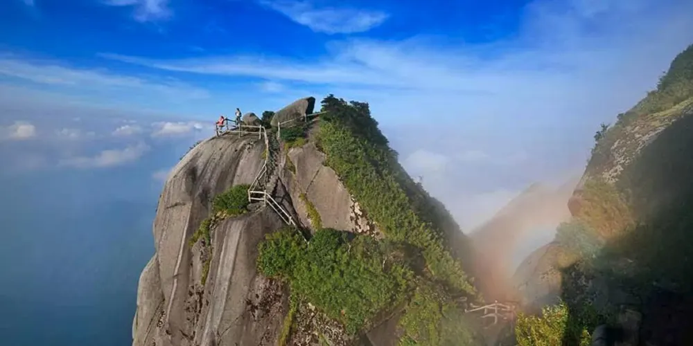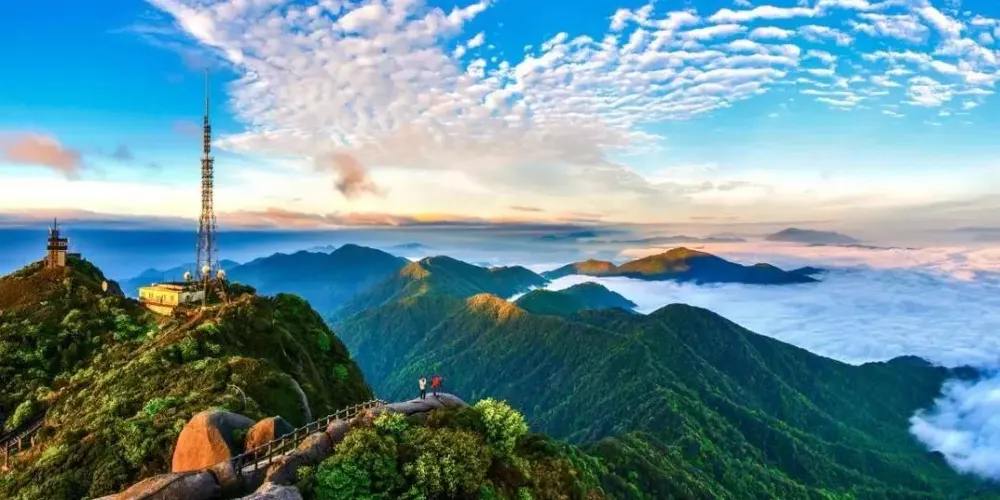 桂林貓兒山主峰海拔2141.5米,是華南較高的山峰華南較高的山峰,常被人稱作「五嶺之首、華南之巔」。這裡也是漓江、资江的發源地,連接長江、珠江兩大水系。