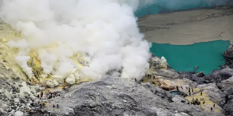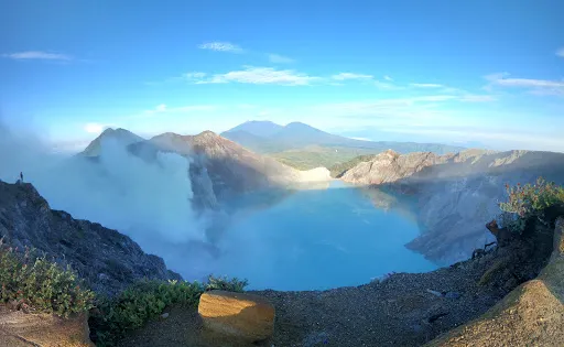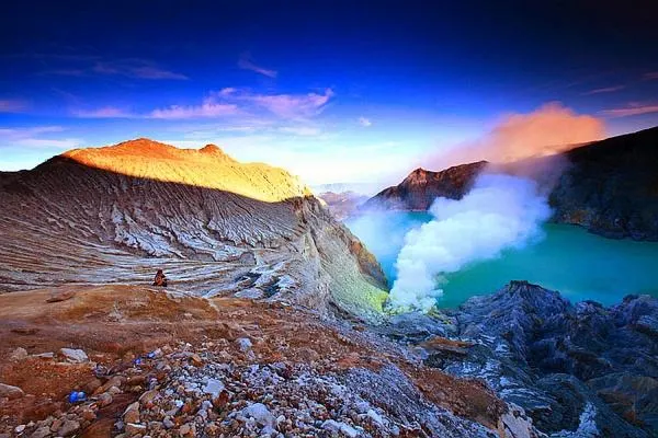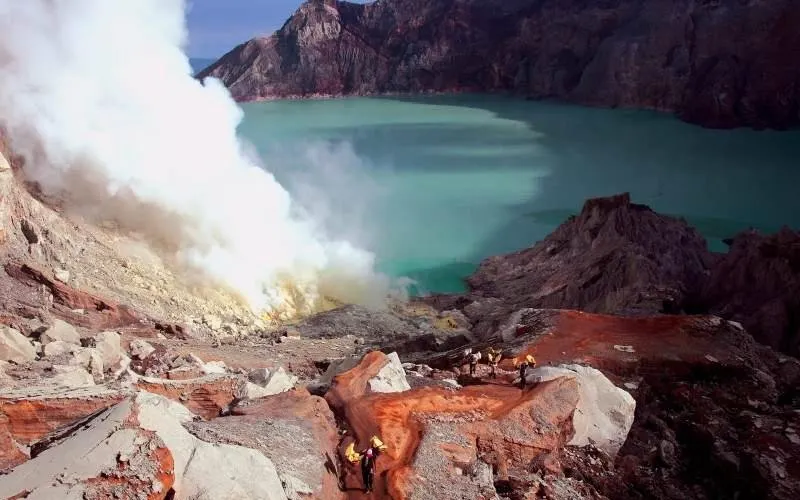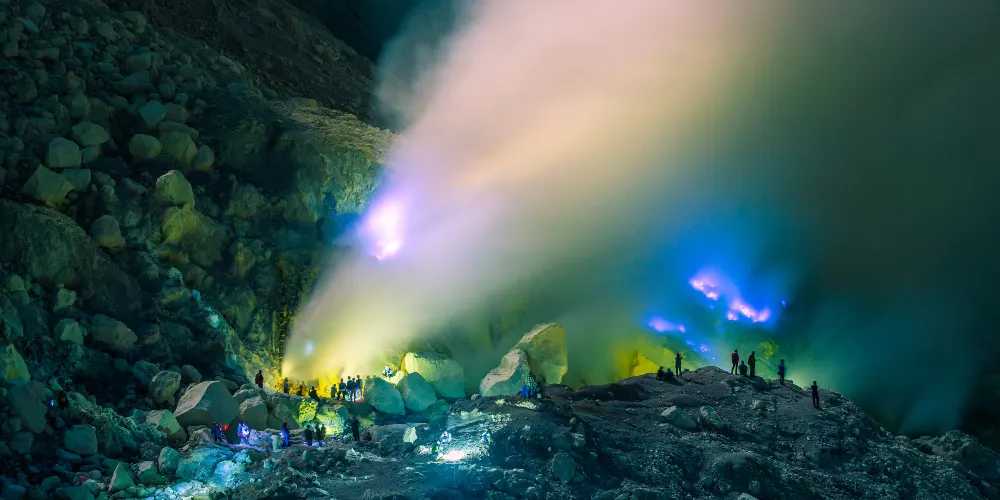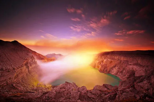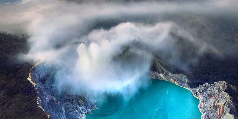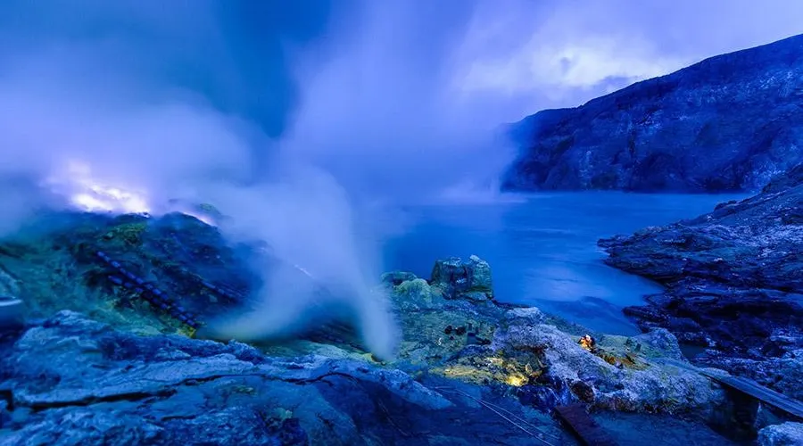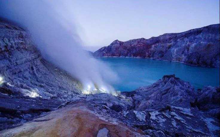 伊真火山位於印尼爪哇島東部,以其壯觀的火山活動和美麗的自然環境而聞名。作為一座活火山,伊真火山不僅吸引地質學家和冒險愛好者,也為普通遊客提供了一個探索自然奇觀的機會。遊客可以在黎明時分徒步攀登火山,欣賞日出時分的壯麗景觀。火山口內的硫磺湖是世界上較大的酸性湖泊之一,其湛藍的湖水與周圍的硫磺煙霧形成鮮明對比,令人嘆為觀止。