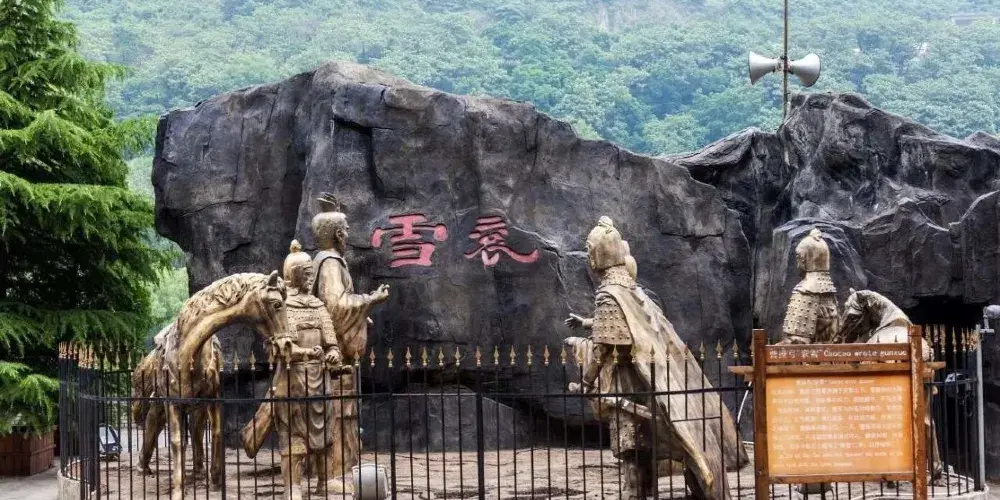 漢隸大字,是曹操手書真跡。公元219年,黃忠刀劈夏侯淵於定軍山下,曹操大怒,親帥大軍來漢中討伐劉備。劉備扼險據守,不與交鋒,消耗曹軍。對峙數月後,曹軍糧草接應不上,士氣低落,退兵褒谷口。一日,曹操帶領文官武將觀石門風光,見褒河水洶湧而下,撞石飛花,揮筆題寫“袞雪”二字,隨從提醒:“袞字缺水三點”。曹操撫掌大笑:“一河流水,豈缺水乎!”遂成千古美談,後刻於河中巨石,上流傳至今。