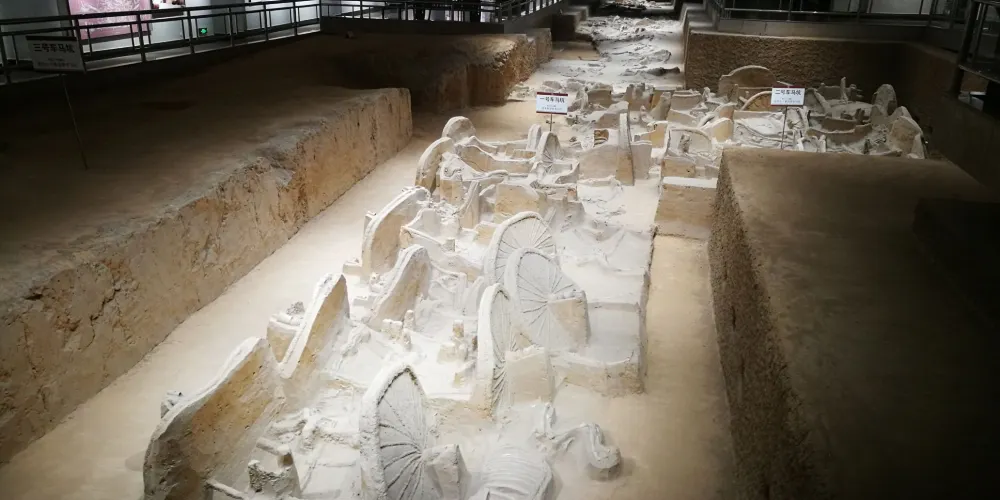 虢國車馬坑距今已經兩千多年了,歷史悠久,坑內有戰馬和戰車,至今仍然保存得很完整。