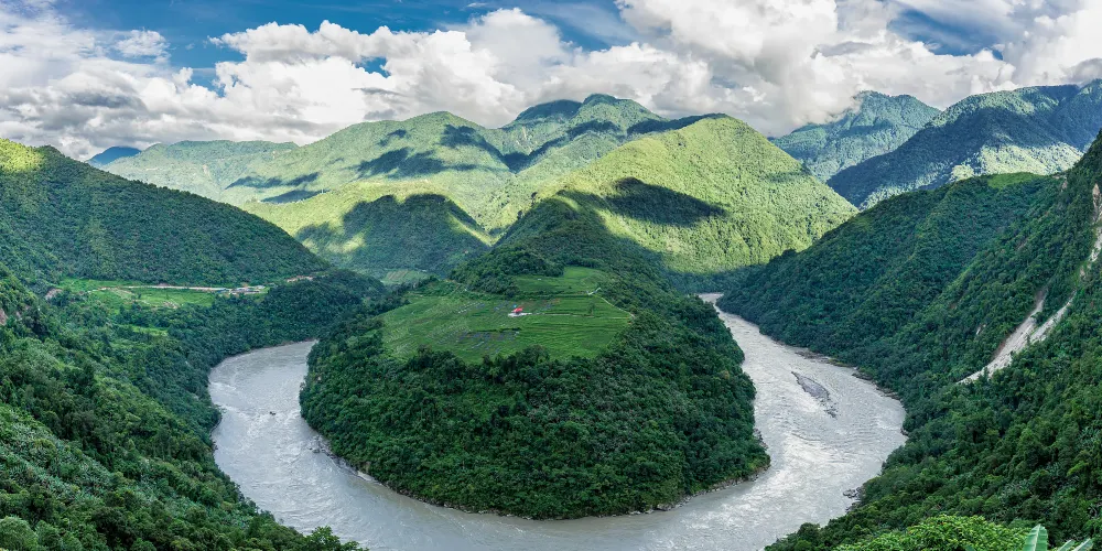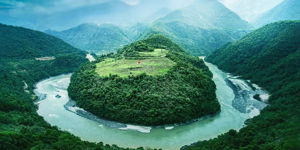雅魯藏布江在果果塘這裏盤了一個大彎,當地也叫蛇形彎。果果塘大拐彎因其俯瞰像一個棒棒糖,所以得名果果塘。