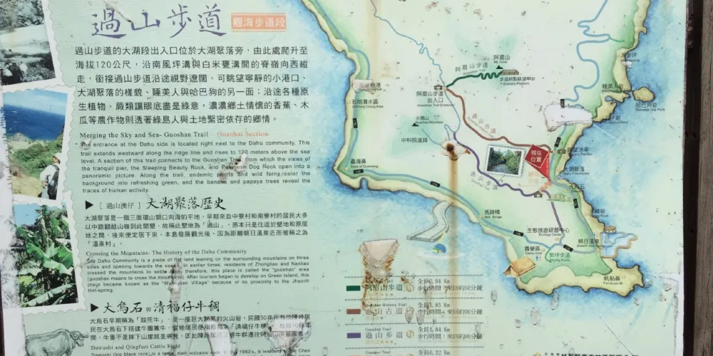 過山古道位於綠島鄉,是一條橫跨南寮村和公館村溫泉聚落的古道,這條古道全長約1.8公裡,是一條生態豐富的鄉間道路,沿途景色宜人而且道路也修葺得不錯。