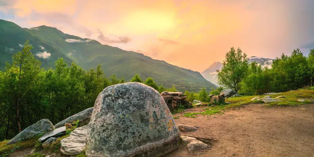 鍋莊坪是一個面積約300多畝的大草坪,它具有典型的高山草甸風光,每當鮮花盛開的時節,這裏微微起伏的山坡上,草木豐盛,野花絢爛,牛羊兒悠閑自在地吃草。當春天來臨時,當地的村民便會上山去采野生菌菇。站在這裏可以將四姑娘山的風采盡收眼底,是拍攝四姑娘山全貌的絕佳地。