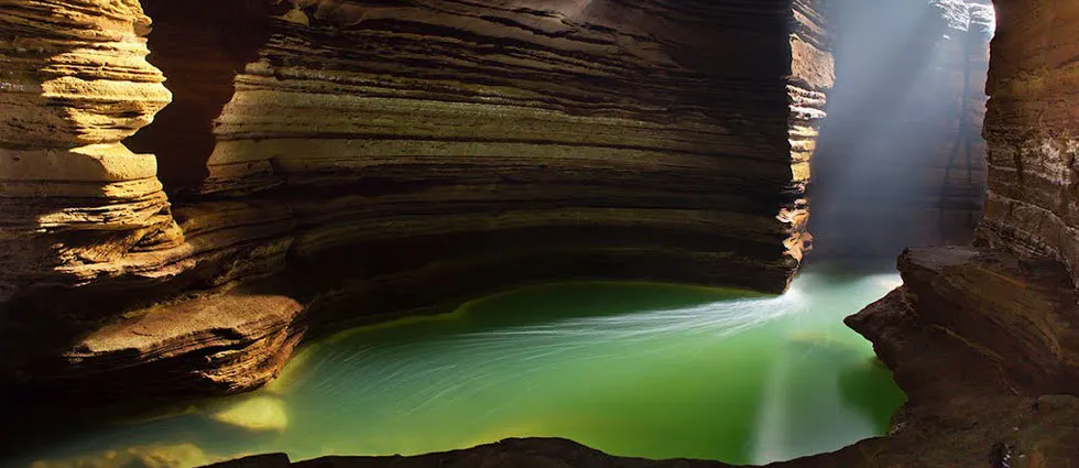 平時瀑布的水流量不大。但是很湍急,只有在雨季的時候才會有真正瀑布的感覺。處在於它的下方是一個地下溶洞,過溶洞後形成一條地上河流。溶洞內常年冒著團團熱氣,用手可以感覺到明顯的熱度,水汽會在空中變換出七彩顏色,經常可以看到彩虹。