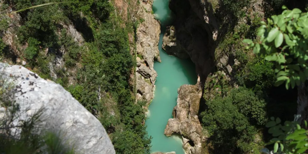 這是個峽谷,可能不是特別適合遊客,峽谷非常陡峭,溪水是碧藍的,與植被的綠色形成鮮明對比。它有着壯觀的懸崖。