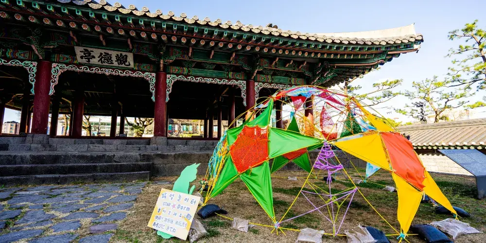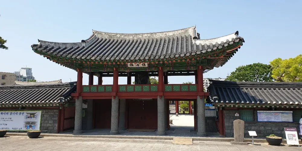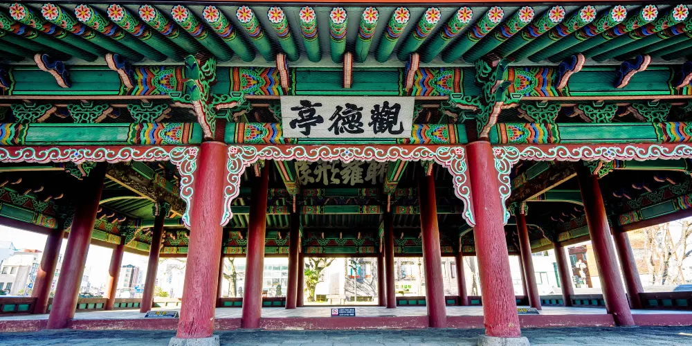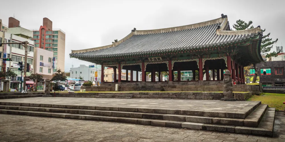 觀德亭是濟州現存曆史最悠久的建築物之一,位於市中心。觀德亭的名字來源於中國宋代大儒朱熹《論語集注》中的“射以觀德”一句,意思是說,看人射箭就能知道一個人的德行如何。觀德亭古時是濟州島的衙門。