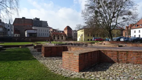 Nicolaus Copernicus Monument in Toruń位於舊城廣場的東南角,是由有名的柏林雕塑家 Fryderyk Tieck 的工作室鑄造,青銅碑描繪的天文學家身著教授袍,左手拿著稱為渾天儀的天文工具,雄偉壯觀。