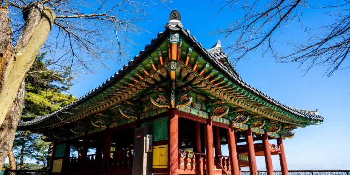 鏡浦台是一座位於鏡浦湖畔的亭子,以正月十五元宵節觀月而聞名,它的屋頂採用韓屋中最常見的“八作”式樣。鏡浦台正面有6間屋,側面5間,共有28根柱子。