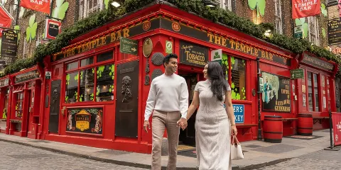 坦普爾酒吧區是都柏林夜生活的腹地,在交錯的石板路兩旁,各具特色的酒吧摩肩接踵,地道的健力士黑啤酒、百利甜酒以及威士忌對到此來訪的酒徒們充滿著巨大的誘惑力。即便不是那麼熱衷於酒精,多少也得來一杯,才不枉到此一遊。在這裡,擁有一切你能想像得到的關於酒吧的元素,另類的電子音樂、嘈雜的觥籌交錯聲、專門用來高談闊論的蓋爾語,就連遊走在街上的氤氳都會因為酒精的揮發而產生微妙的氣味。