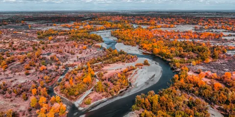 - 5分距離市中心85.7公里那仁河蜿蜿蜒蜒地流過那仁夏牧場,滋養着這一方遊牧人的夏季家園。盛夏時節,這裏仍然涼爽宜人,點點白色的氈房像蘑菇一樣撒滿美麗的草原。這裡是草的海,翻滾着花的浪,芍葯、金蓮、百合和無數不知名的野花開得熱鬧無比。牧場邊緣是由雲杉、冷杉、紅松等珍貴樹木組成的森林林,極目遠眺,阿爾泰山主峯友誼峯常年不化的積雪在陽光的照耀下熠熠生輝。即使衹有温柔的陽光和混合著草木香的空氣,也足以形成那仁夏牧場的超強吸引力了。