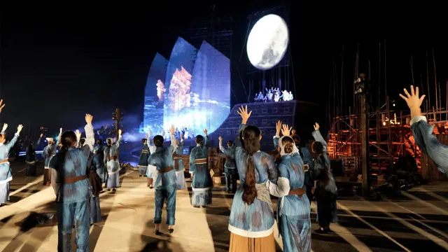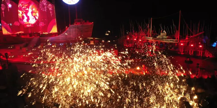 海絲首港景區核心項目,晚上全景互動式大型實景演藝《水與火之歌》,全日票已包含。運用海、島、港、船、街、樓等作為表演空間,演藝採用遠景、中景、近景融合的方式,集歌唱、舞蹈、戲劇、曲藝、雜技等表演形式為一體。經過精心打磨,最終凝練為華燈初上、盛世始發、海上明月、波斯異域、羅馬使船、歸去來兮、萬船出港、盛世煙花八個章節,講述古代海上絲綢之路始發港兩千年前的文化交流和商貿往來盛況。