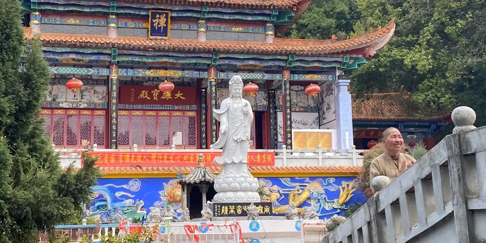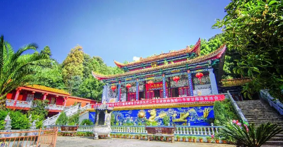 海潮寺森林公園位於四營鄉大山哨村後大鼎山,此地林木蔥鬱,潭泉處處,環境優美,置身山上,放眼北眺,嵩明壩子的田園風光盡收眼底。山北麓有一溶洞,洞寬20-30米,高約30米,縱深約1000米,分上、下兩宮,總面積約5700平方米。洞內鐘乳石千姿百態,晶瑩閃爍,玲瓏剔透,經初步開發,更加奇觀迭出,氣象萬千,引人人勝,被譽為"水晶宮"。這裡,古有海寺,始建於明代,為嵩明八大寺之一。後因年久失修而漸傾坍,20世紀60年代,僅存遺址。