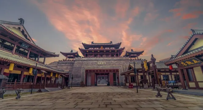狀元城位於全園中軸線的最東側,佔地63,000平方米。該區分為「大唐市集」、「鰲皇碼頭」、「萬象神宮」三個板塊,從肌理結構、建築景觀、生活業態等各方面最大程度還原神都洛陽,並通過娛樂演出、闖關遊戲、場景故事化等手段訴說神探狄仁傑奉旨查案的故事主線,展現一個氣勢磅礴、風雲變幻的大唐。