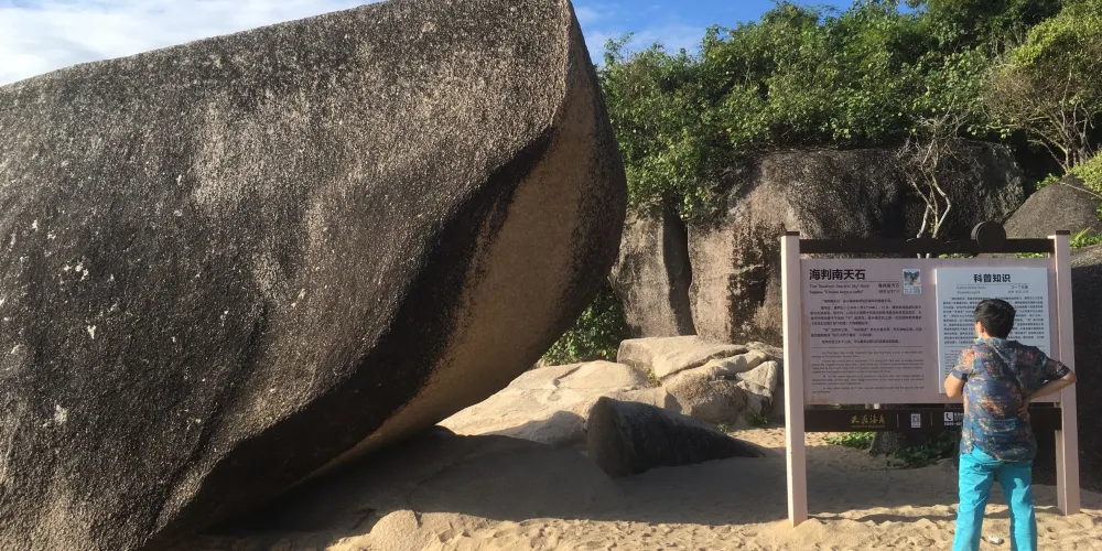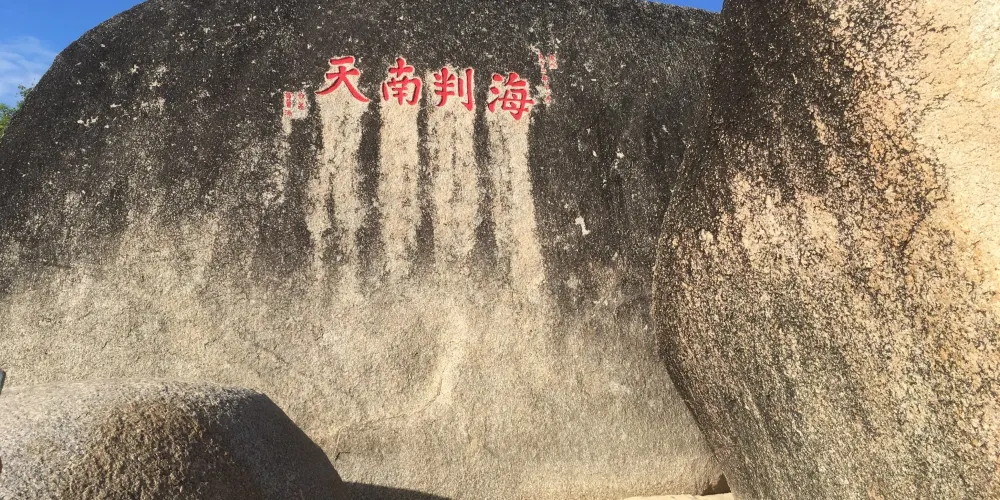 海判南天石是天涯海角遊覽區內最早的磨崖石刻。石與字的組合給人以古樸蒼勁的質感和時空永恆的聯想。清康熙五十三年(1714年),三位欽天監欽差奉康熙皇帝諭旨在下馬嶺海邊題刻“海判南天”石刻,經考證並得到認定,三位欽差分別是欽天監苗受、理藩院郎中綽爾代和法國耶穌會士湯尚賢,“海判南天”為《皇輿全覽圖》測繪遺跡,是18世紀中法科技交流的歷史見證。