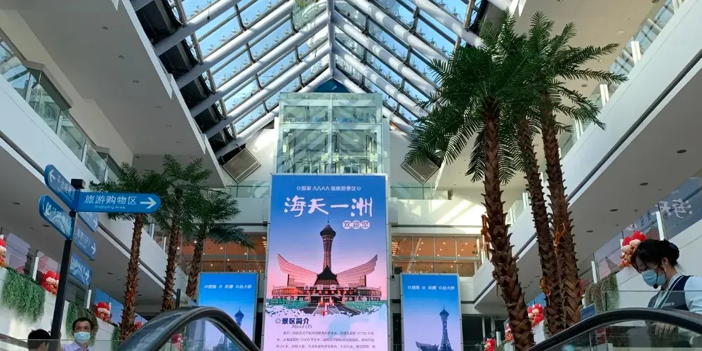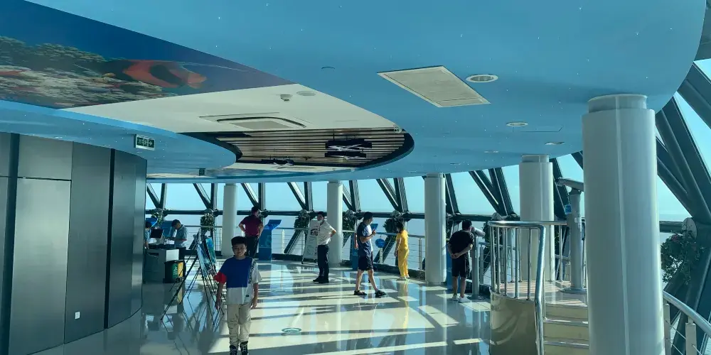 國內海上高空玻璃棧道,位於觀光塔16層嘹望廳兩側,海拔134米,站在高空的玻璃上,整個人彷彿懸空而立,透過玻璃往下望去,視野開闊,不僅可以領略杭州灣跨海大橋的雄姿,同時也能體驗到驚險、刺激的玻璃棧道。