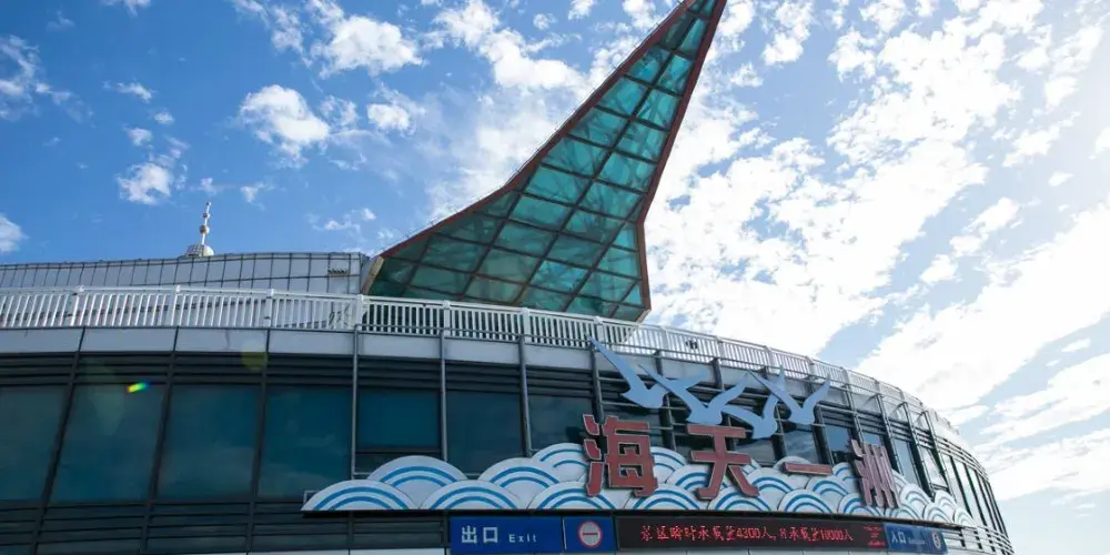 海天一洲景區外觀整體造型“大鵬擎珠”,寓意杭州灣地區的發展能如大鵬展翅,越飛越高。它佔海域面積12000平方米,分觀光平台和觀光塔兩部分。平台建築面積36600平方米,6層全鋼結構,提供餐飲、住宿、休閑、娛樂、觀光、購物等綜合性特色服務;觀光塔高145.6米,建築面積5100平方米,共19層,讓您可以站在至高點俯視大橋的氣勢恢宏,杭州灣的波瀾壯闊。