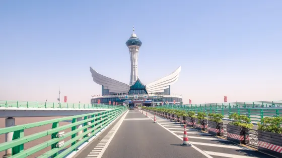 海天一洲位於杭州灣跨海大橋中部,南航道以南1.7公里,通過匝道橋與大橋主線連接,是國內人工海上觀景平台。