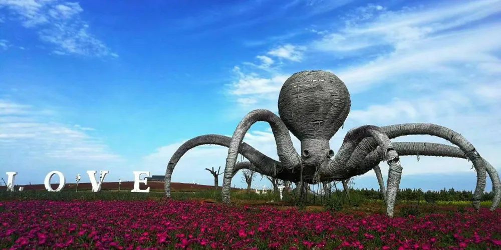 海陽連理島地處煙台海陽市旅遊度假區內,是中國北方離岸式人工島嶼。通往島體設有一條長約一千餘米的透水性棧橋,而東西兩島則由一條近百米的引橋將兩島相連。連理島以濱海休閒為主,包含有薰衣草花田、馬場、生態垂釣、沙雕等遊玩景點。其中,海上薰衣草花田景區廣受歡迎,內有彩虹瀑布、花海遊船、情人湖、愛神廣場等遊玩項目,花期時,大片的薰衣草盛開,非常漂亮。