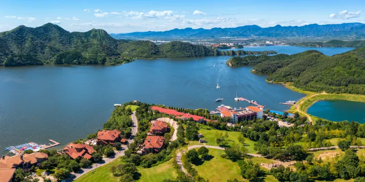 距北京城區餘公里。年月建成。年和年至年進行續建和擴建。總庫容.億立方米,控制流域面積平方公里,是北京市的座大型水庫之一。建有主壩、南副壩、溢洪道、電站及座非常溢洪道。主壩為粘土斜牆壩,大壩高.米,壩頂長米。庫北將軍關西的金山產黃金,故水庫又稱金海。