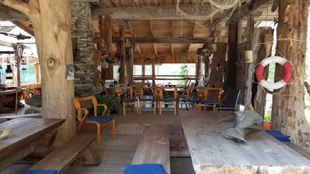HakoApaja buildings made of ancient logs pulled from the bottom of the lake