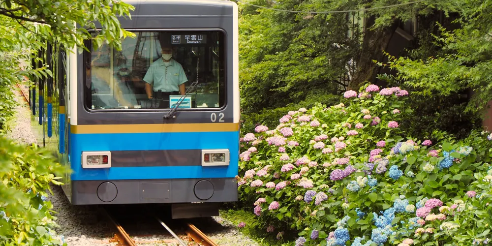 箱根登山纜車位於日本神奈川縣,它連結了從強羅車站到早雲山車站為止的路段,整個車程大約十分鐘。透過車廂的玻璃門,放眼望去沿路鐵軌蜿蜒盤旋前行,每個纜車停站點都是一道風景,讓人可以體會到在日常生活中無法體驗的乘坐樂趣。