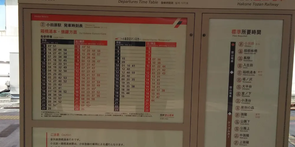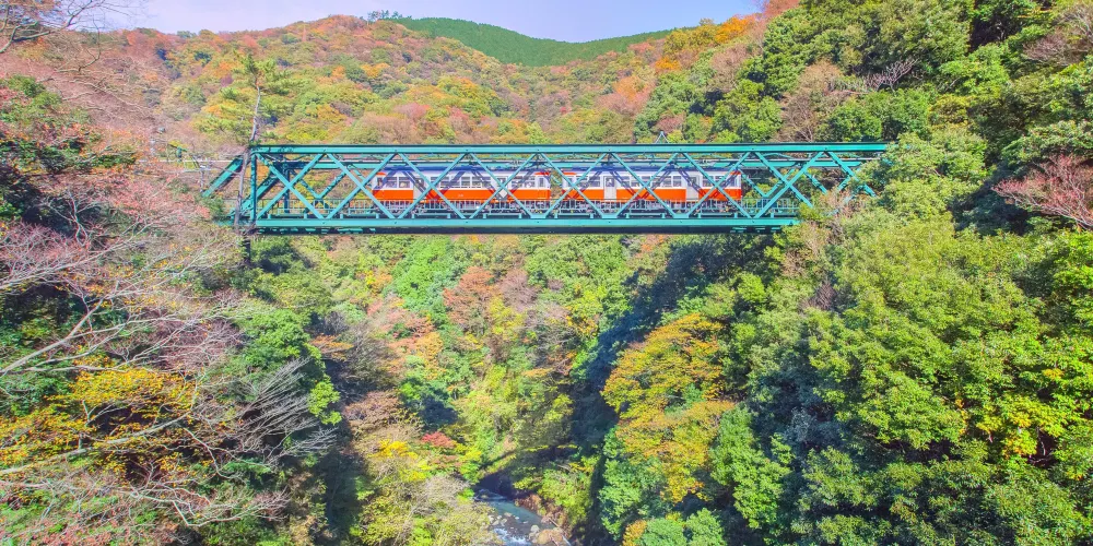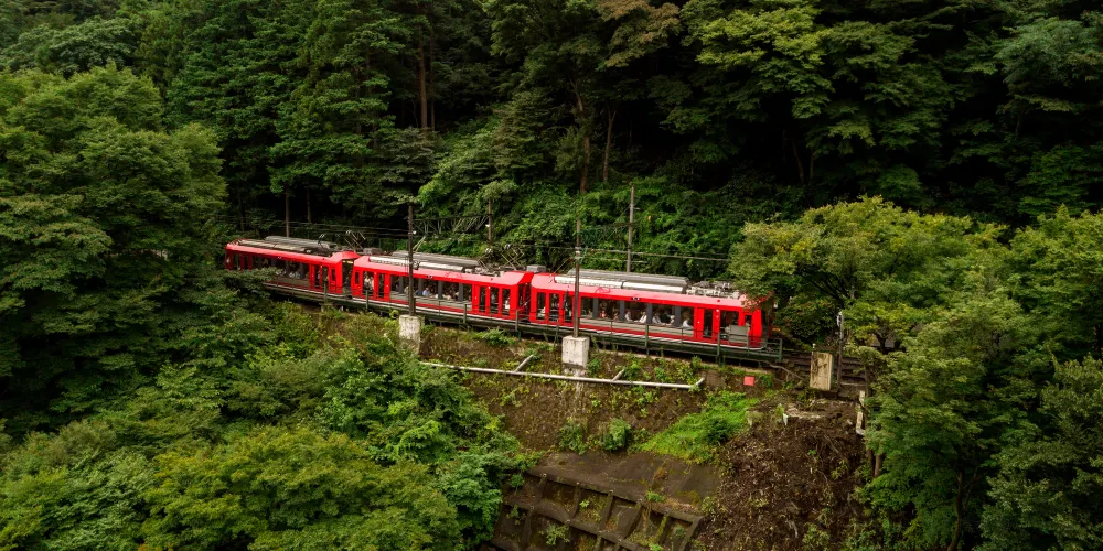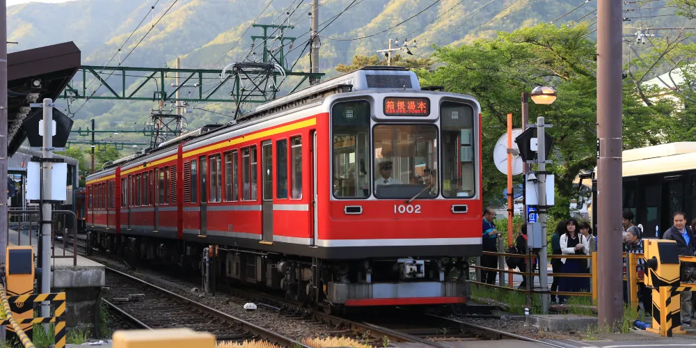箱根登山電車從海拔108公尺的箱根湯本站出發,約40分鐘抵達海拔553公尺的終點強羅站。有時中途會以「之」字形路線逆向行駛,由於車輛的行駛方向變為逆向,駕駛員與乘務員會調換。你會享受到搭乘登山電車所特有的旅行樂趣。