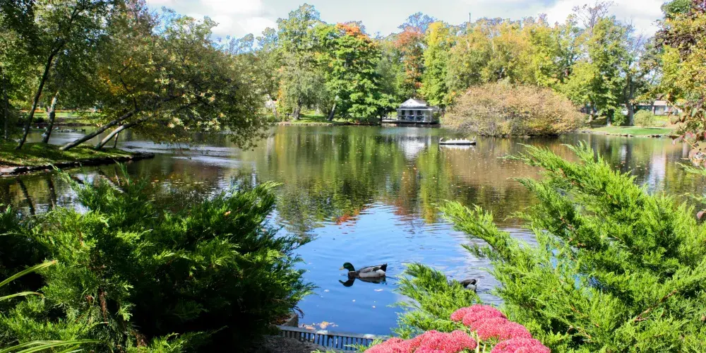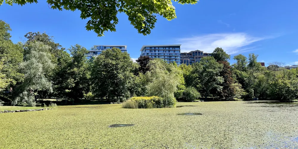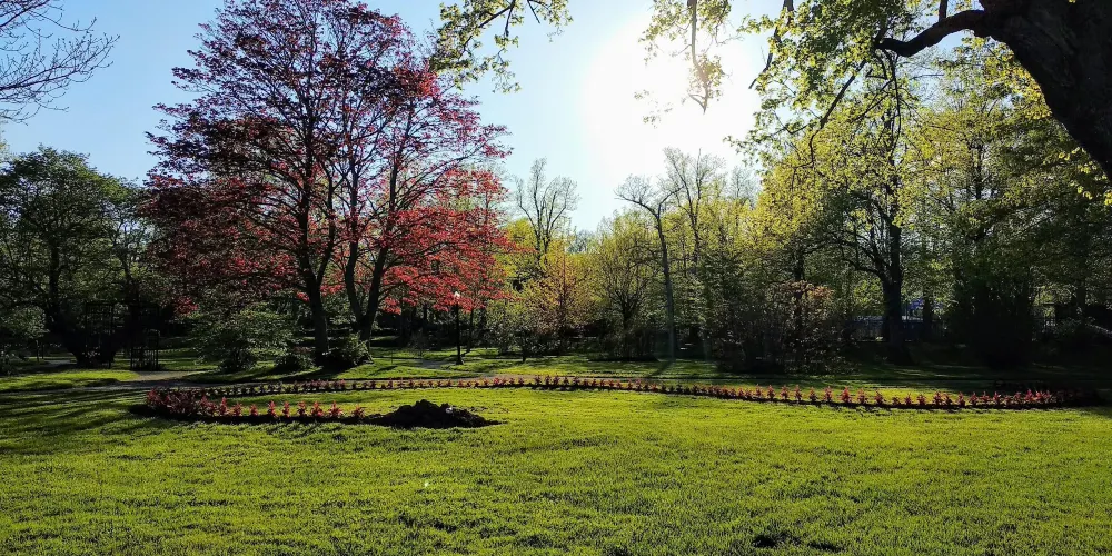花園中有繁茂的樹林和絢麗的花卉,夏天花開時景色最美,總有不少老人在這兒散步、鍛煉身體。每到周日下午,還會有老人樂隊在露台上演奏,不妨駐足聆聽。而冬天下雪時,公園可能關門停業。