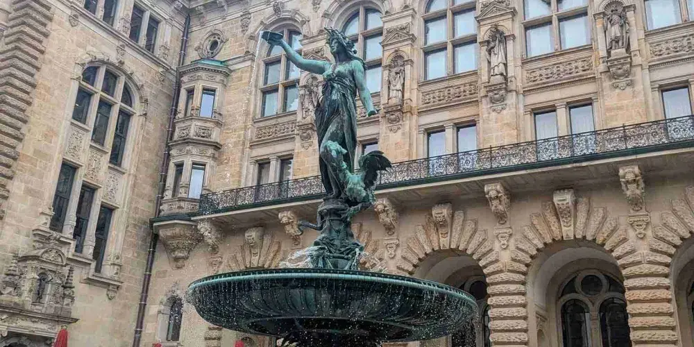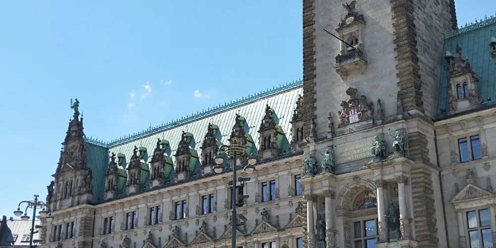 漢堡市政廳建於1886年,是19世紀後半期建成的新巴洛克式風格的建築物,建築上裝飾著不少富有紀念意義和象徵作用的藝術品。整個大廈用砂岩砌成,整體呈煙灰色,屋頂為銅綠色,呈現古樸的風格。塔上裝飾著金色的帝國之鷹,這是德意志統一的標誌。