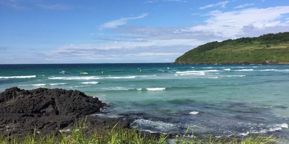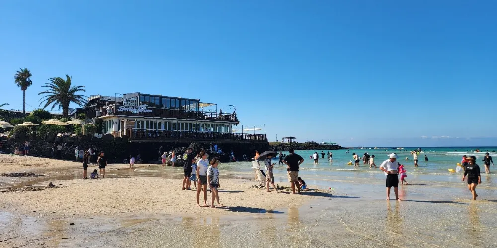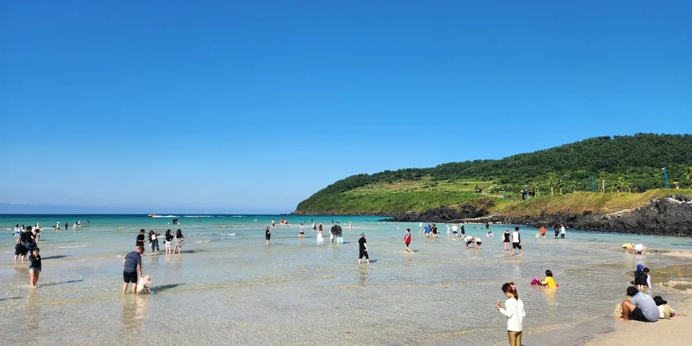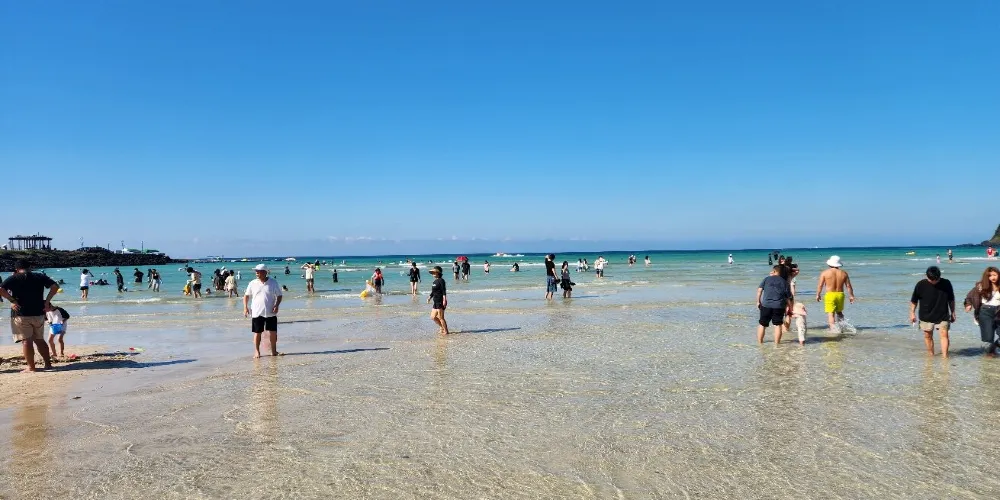 濟州市東部的鹹德海水浴場是十分受大眾青睞的避暑勝地。這裡的沙灘十分乾淨,而且浴場水淺,傾斜度完美,適合與孩子一起戲水。