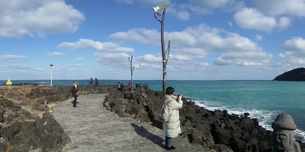 此地又是濟州島首屈一指的西瓜產地,海水浴場沿邊而設的海鮮店裡可以嘗到新鮮的生魚片,在海水浴場東邊2公裡處有北村釣魚場。