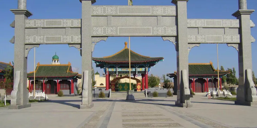 當初回王修建這裡時是仿造故宮的建築建設的,又加入了伊斯蘭的風格,所以裡面的建築都很有特色。首先是清真寺,寺的大殿是典型的漢式建築,而宣禮樓卻是伊斯蘭的圓拱尖頂建築,反差很大。參觀院落時還要注意一下,在院落亭台內看不到任何的動物和人物的雕像,只有花草和各種幾何圖案,這也是伊斯蘭教的風格,很有特色。