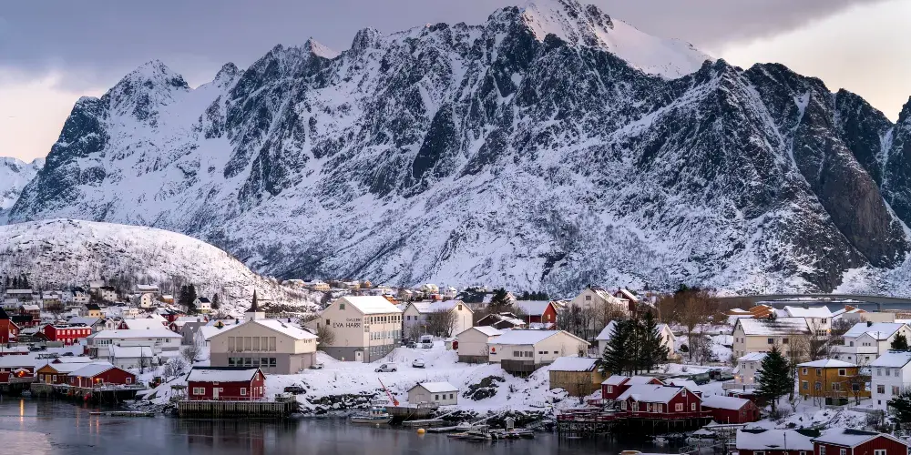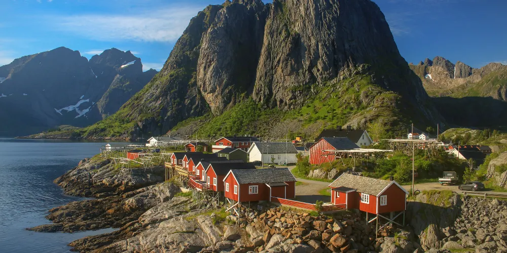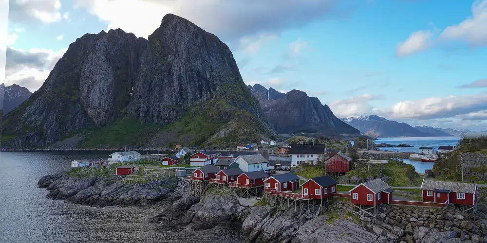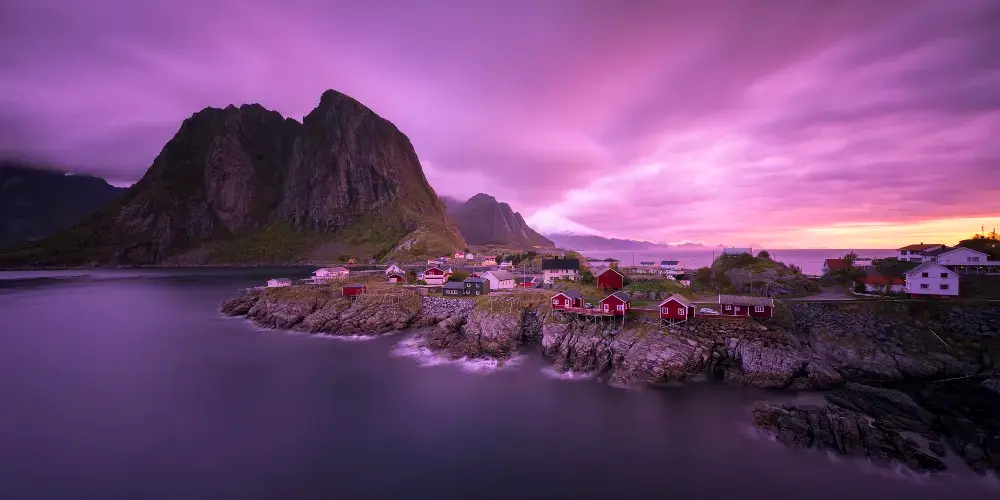 哈姆餒伊是一個攝人心魄的小漁村,這裡是攝影愛好者的天堂,在海水、峽灣、雪山之間,棕紅色的屋子給這裏增添無盡韻味。