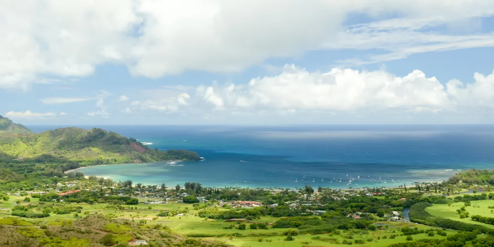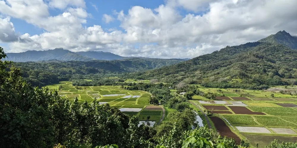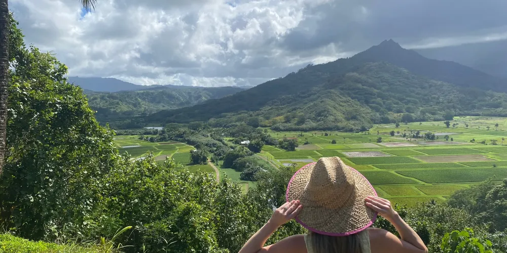 站在哈納萊伊山谷的瞭望台上,眼前就呈現處一幅無與倫比的自然畫卷。眺望山谷中青山綠水的美麗景色、遠方隱約可見的大海、深谷裏成片綠油油的農田和山間緩緩流淌的小溪。