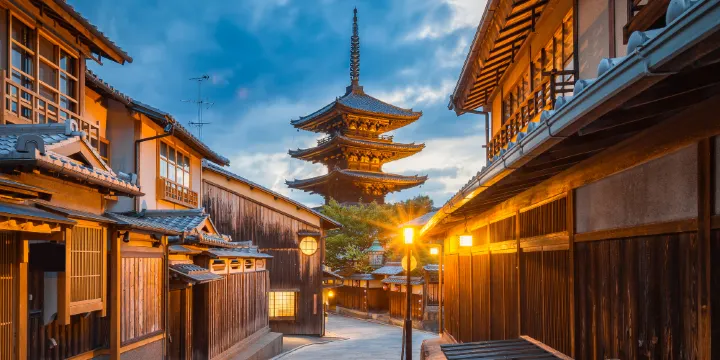 在京都祇園有一條花見小路,「花見」在日文中意為賞花,不過這裡並沒有櫻花,而是舊時古城的風月之地。花見小路從江戶時代起就是整個日本有格調的花柳街,也是現在少數的尚能看到藝伎的場所。花見小路由北到南長約1公里,當你穿過車水馬龍的四條通,踏進石板鋪砌而成的花見小路,就能看見一間間門面精巧、擋有垂簾的茶屋、居酒屋等。小徑兩側許多竹籬紅牆的高級料理亭是專為懷石料理的,通常還會安排藝伎娛樂節目。清晨與傍晚的花見小路清晨時的花見小路十分安靜,許多店鋪都沒有開門,卻可以感受一份古樸清閒的韻味。如果你在下午早些時候或傍晚時分前往,則常能看到踩著木屐、行色匆匆去赴約的藝伎或舞伎(藝伎學徒)。當夜幕降臨,各種居酒屋門前會點亮紅色的燈籠,在夜色中顯得尤具風情。邊品料理邊賞藝伎表演若你仔細觀察,會發現有些高級料理亭前的紅色提燈上標有“舞妓”二字,說明這裡是提供藝伎節目的,在門外也能看到寫有藝伎小名的木名牌。不過,如果你想一邊品嚐日本料理,一邊欣賞藝伎表演,費用還是比較昂貴的。親自體驗變裝雖然說來到花見小路總是期待能和藝伎偶遇,但有時候你看到的未必是真正的藝伎。京都的變裝體驗很流行,許多遊客會把自己打扮成藝伎的樣子,到祗園尤其是花見小路上拍寫真。當然,你也可以找一家變裝店來體驗一回,費用大概1萬多日圓起。