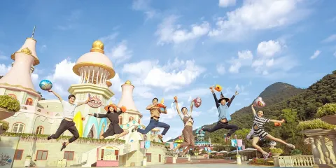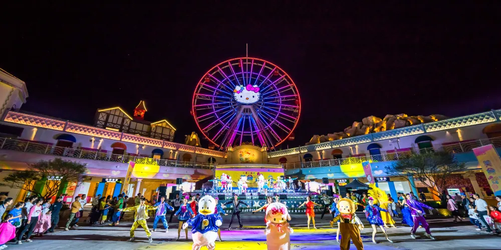 友誼廣場是Hello Kitty同朋友們友誼嘅象徵。每日佢哋都會喺呢個廣場集合,你一言我一語,討論聽日要畀嚟呢度嘅朋友咩驚喜。仲可以喺46米高空一覽成個安吉Hello Kitty樂園(Hello Kitty Park)喺充滿歡樂景象嘅「繽紛摩天輪」上,感受公轉自轉嘅炫酷體驗。
