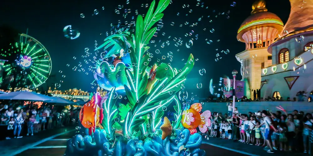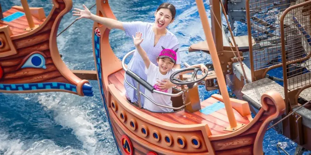 歡樂港灣以大眼蛙為主題,他將這裡變成了一個港口。這裡的船隻乘坐的都是滿懷熱情的冒險者,他們或是立志成為暢遊大海的船長,或是希望變作尋覓珍寶的獵人,或是嚮往大海的寬闊與美麗。這裡每天都熙熙攘攘,不斷有人整裝待發,迎接他人生前方的冒險和挑戰。