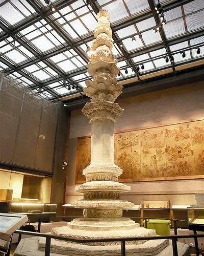 建築本身是整個景區的一大看點,新建的塔更像一座博物館,從底座往上共有5層。檢票後可以先乘搭電梯(當然也可以爬旁邊的樓梯)到達塔基遺址,這裡可以看到被玻璃圍起來的舊塔殘破底座,裡面滿地都是零錢,也算是一景。這一層還有一些地宮出土的文物展覽,其中一座阿育王塔尤為精美。