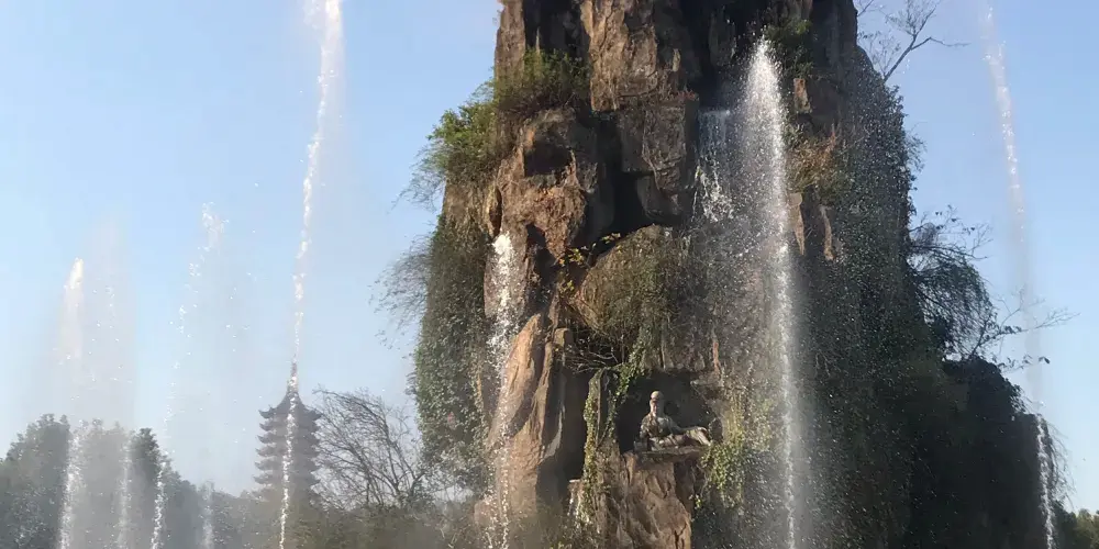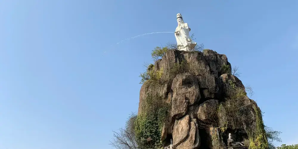 杭州東方文化園是中國遊文化示範地以及中國十佳主題公園,位於蕭山義橋,距離杭州市區、蕭山城區各為15公里。是一處以傳統文化為基礎的文化旅遊區。文化園內分為儒家區、佛教區和道家區等幾部分。園區門口有巨大的福壽雙星雕塑,入內便是佛教區的觀音顯聖,人造假山四周有許多菩薩和神仙的塑像。「觀音顯聖」是固定上演的節目,每天9:00、10:30、13:00、14:30(以景區公告為準),觀音聖像升到山頂,音樂噴泉開始表演,菩薩手中的淨瓶中噴出聖水,下面的善男信女爭相迎接,場面壯觀。往裡走便是楊歧禪寺,寺院背後的地宮廣場上供奉著一尊泰國佛教界贈送的釋迦牟尼佛,佛像周身用寶石等鑲嵌,是國內大的玉臥佛像。參觀完萬佛塔金地宮繼續往裡走,可登上三江寶塔俯瞰文化園全景,以及周邊的城市景觀。過三江寶塔,後面便是太虛湖畔的道家區和儒家區,也是與儒道文化相關的一些仿古建築、塑像石刻之類的景觀,一條水上藝術長廊可觀湖景。簡單看過,便可由太虛橋回到入口處附近了。如果時間充裕,附近的東方水世界可一併遊覽。