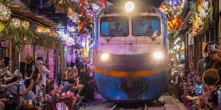 河內火車街是一條獨特的街道,因其緊鄰鐵軌而聞名。位於河內老城區,這裡是體驗當地生活和文化的熱門地點。火車道兩旁分佈著多家咖啡館,遊客可以享用越南特色咖啡,同時感受火車從身邊緩緩駛過的獨特體驗。