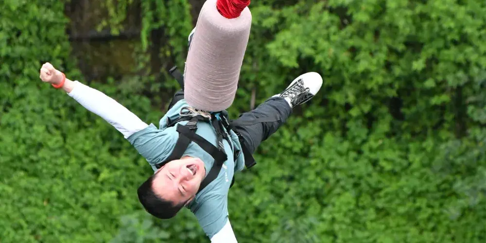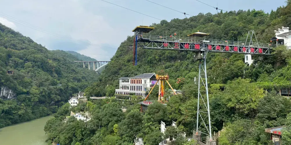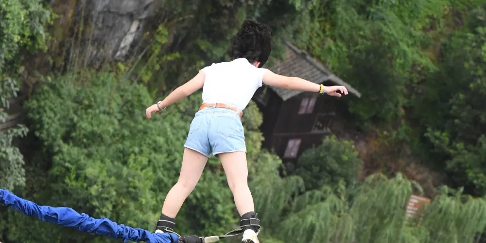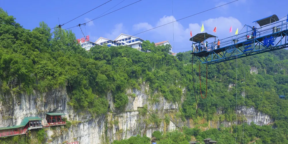三峽地區以極限體驗為主題的運動休閒型景區——【西陵峽快樂谷】,其主營項目「快樂谷三峽笨豬跳」,高度為61米,相當於站在二十多層高的樓頂,縱身下跳的感覺,把身心溶入山水之間,用心去體會那短暫又充滿激情的過程,體驗一次重生,挑戰過後盡是坦途。