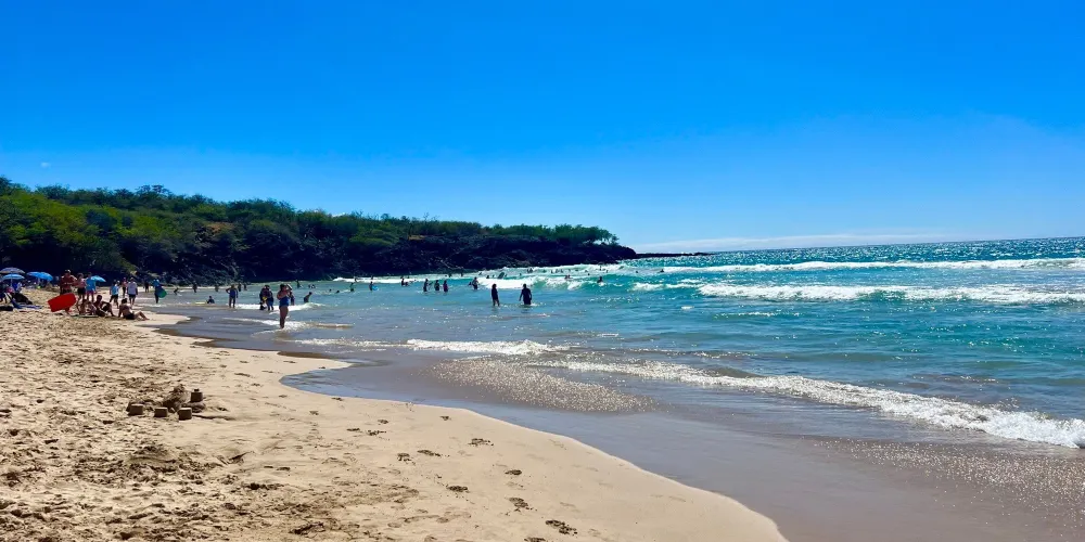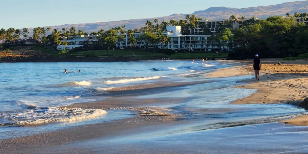哈浦納海灘,是夏威夷當地一處非常漂亮的海灘,海水清澈、沙子細膩。這裡有水上運動項目和類似沙灘排球的羣體運動項目,還有潔凈的休息室、淋浴間和更衣室。