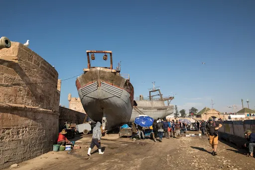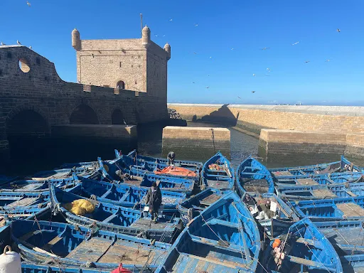 則評價索維拉漁港是防禦城堡的天然良港,在這裡每日都在上演拍賣剛靠岸沙丁魚的"藍色集市"。推薦租借橘色膠靴深入碼頭,觀察柏柏爾漁民海草編織漁網的傳統技法。港區北側石階處可預約漁船出海,9月能偶遇遷徙的北大西洋灰海豹。 交通方面,可從馬拉喀什CTM車站搭乘早班巴士直達,終點站步行即可抵達。購買海鮮需自備零錢,可帶到港口燒烤攤代加工。隱蔽彩蛋在潮池觀測站,退潮時能觸碰到吸附岩壁的鵝頸藤壺。冬季是攝影的好時節,逆光中的藍色漁船與粉紅色城牆形成強烈撞色。遊玩時注意避開正午的漁獲裝卸高峰期,重型拖網車會佔據主要通道。