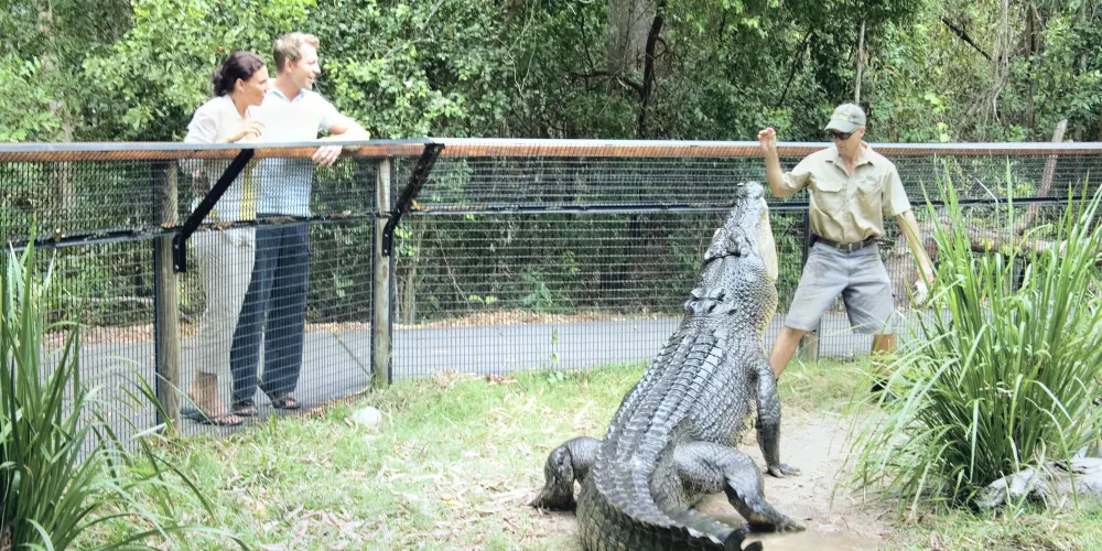 穿梭於園內長達2100米的木棧板路帶你探索這片熱帶雨林圍繞的林地、野生動物、美麗的熱帶鳥類和北昆士蘭豐富的爬行動物、參觀馬卡利斯特教育中心、食火雞花園。園內不同時段呈現的精彩活動寓教於樂、驚險刺激,適合於各類人群遊客,弄蛇表演、餵食鶴鴕、特色鱷魚湖遊船、鱷魚攻擊表演秀、鱷魚農場參觀、考拉講解等滿足你半天或全天的鱷魚公園體驗。在園內的”百合餐廳”您還可品嘗到鮮美的鱷魚肉或自點各類餐飲!