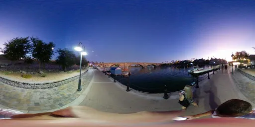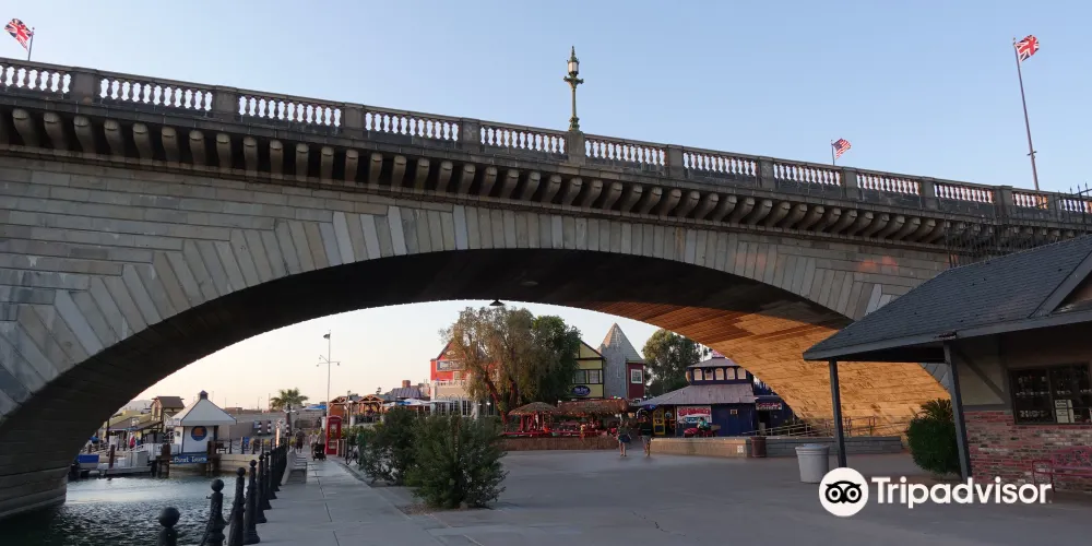 倫敦橋原來是倫敦泰晤士河上的一條交通要道,建於1820年。到了60年代,倫敦橋因為跟不上交通需要被當局決定拆除。而這座擁有150年歷史的舊橋被精明的英國人拿出來拍賣後,被美國麥庫洛奇地產公司老闆麥克洛克以246萬美元拍下。於1968年,用海輪將拆開的石塊遠渡重洋,運到哈瓦蘇湖城,將橋再現於一條人工河道上。今天,古老的倫敦橋落戶異邦荒漠中的這塊綠洲,與周圍的景色相映襯,顯出獨特的異域風光來。